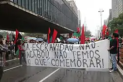 Os militantes do atual movimento negro no Brasil evocam um outro 13 de maio, que vê a abolição, em 13 de maio de 1888, como sendo um golpe branco visando a frear o avanço da população negra, que era, na época, um minoria oprimida.