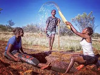Os aborígenes australianos são nômades, caçadores e colectores de vegetais e praticam a religião animista. No deserto, as populações concentram-se onde há água em acampamentos temporários. As habitações são simples refúgios. Erguem proteções contra o vento com ramos e moitas e, se o solo for arenoso, escavam covas para ficarem mais protegidos do mesmo. Quando as noites são frias, dormem ao redor do fogo. O cão é o único animal doméstico.