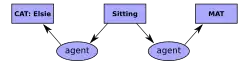 Gráfico conceitual de "um gato (cat) sentado (sitting) sobre um tapete (mat)" (Gráfico I).