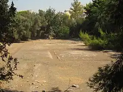 Antes da Academia ser o que era, foi uma escola, e mesmo antes de Cimon cercá-las com muros,[2] no seu terreno havia um bosque sagrado de oliveiras dedicados a Atena, a deusa da sabedoria, fora das muralhas da cidade antiga de Atenas.[3] O nome arcaico do local era (em grego clássico: Ἑκαδήμεια Hekademia), que depois evoluiu para Academia, esse nome foi explicado pelo menos no início do século VI a.C., ligando-o a um herói ateniense, o lendário "Academo".