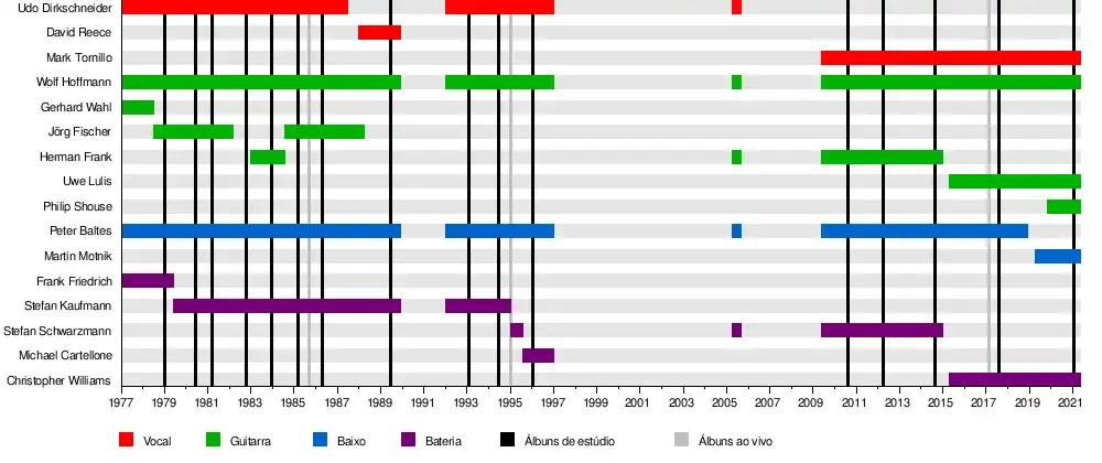 - ↑ Blabbermouth (27 de novembro de 2018). «ACCEPT's Founding Bassist PETER BALTES Quits Band». BLABBERMOUTH.NET (em inglês). Consultado em 17 de junho de 2022