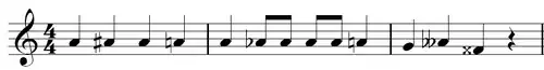 Dobrado sustenido [português Brasil] ou Duplo sustenido [português Portugal] Eleva a altura da nota que se segue em um tom (dois semitons) em relação à sua altura natural. |