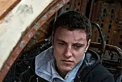 Um homem com cicatrizes faciais visíveis resultantes de uma colisão de carro.