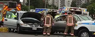 Algumas colisões de tráfego são causadas intencionalmente por um motorista. Por exemplo, uma colisão pode ser causada por um motorista que pretende cometer suicídio veicular.[36] As colisões também podem ser causadas intencionalmente por pessoas que desejam fazer uma reclamação de seguro contra o outro motorista, ou podem ser encenadas para fins como fraude de seguro.[37][38] Veículos motorizados também podem estar envolvidos em colisões como parte de um esforço deliberado para ferir outras pessoas.[39]