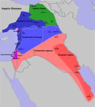 - ↑ «First World War.com - Primary Documents - Sykes-Picot Agreement, 16 May 1916». www.firstworldwar.com. Consultado em 26 de novembro de 2022
