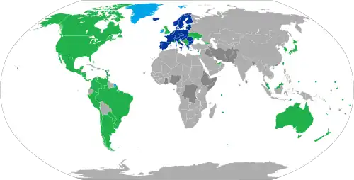 ![]() Espaço Schengen Estados legalmente obrigados a juntarem-se ao Espaço Schengen | |