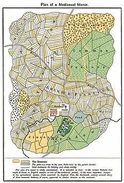 Caracterizava a sociedade medieval a posse direta dos produtores sobre seus meios de produção e subsistência e, particularmente, sua ligação com à terra. Essa massa camponesa livre desfrutava de terras comunais, garantidoras de pasto para rebanhos, matérias primas e combustíveis. A terra de um senhor era partilhada entre seus vassalos, cujo excedente do trabalho era por ele apropriado através do que Karl Marx denomina de meios "extra econômicos": a coerção direta através do uso da força.[6][7] O número de súditos de um senhor era uma representação de seu poder.[5]