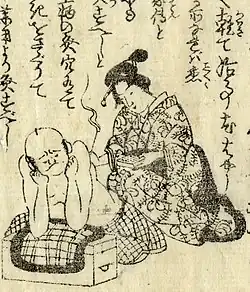 ![]() Aplicação de Moxa, ilustração de origem japonesa no livro de Banshō myōhōshū (万象妙法集, 1853) | |
