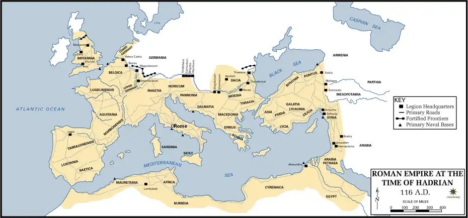 - ↑ Opper, Thorsten. Hadrian: Empire and Conflict. Harvard University Press, 2008, p. 170