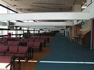 Oferece um terminal internacional (com dez portões de embarque, numerados 10-20) e um terminal doméstico (com sete portões de embarque, numerados 21-27).