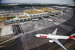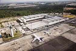Inaugurado em 1976, foi o primeiro aeroporto da rede Infraero a ter pontes de embarque e todo sistema automatizado, fazendo com que se tornasse o mais moderno do país na época.[8] Tinha anúncios de voos em português, inglês e espanhol com locução de Íris Lettieri.[9][10] Com uma área de 14 quilômetros quadrados, o complexo aeroportuário conta com dois terminais de passageiros, um para atender a aviação regular e outro, a aviação regional. Também dispõe de um complexo de logística de carga, que foi implantado em três etapas, sendo o Terminal de Logística 1, inaugurado em 1976, o Terminal de Logística 2, em 1980 e o Terminal de Logística 3, em 2004.[11]