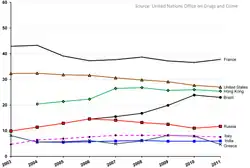 Um relatório das Nações Unidas compilado a partir de fontes governamentais mostrou que mais de 250.000 casos de estupro ou tentativa de estupro foram registrados anualmente pela polícia. Os dados abrangiam 65 países.[79]