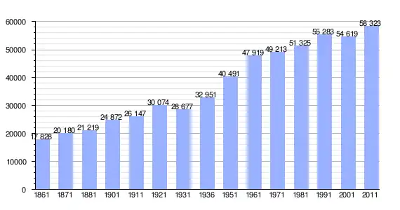 | Variação demográfica do município entre 1861 e 2011[1] |