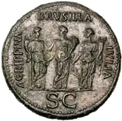 As três irmãs de Calígula, Agripina Menor, Drusila e Júlia Lívila.