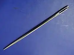 Uma agulha de costura, usada para costura à mão, é uma ferramenta longa e fina com uma ponta pontiaguda em uma extremidade e um orifício (ou olho) para segurar a linha de costura. As primeiras agulhas eram feitas de osso ou madeira; agulhas modernas são fabricadas com fio de alto aço carbono e são banhadas a níquel ou ouro 18K para resistência à corrosão. As agulhas de bordado de alta qualidade são revestidas com dois terços de platina e um terço de liga de titânio. Tradicionalmente, as agulhas eram guardadas em livros de agulhas ou estojos de agulhas que se tornaram objetos de adorno.[1] As agulhas de costura também podem ser guardadas em um étui, uma pequena caixa que continha agulhas e outros itens como tesouras, lápis e pinças.[2]