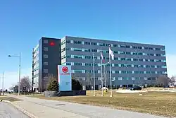 A sede da Air Canada (Edifício 2 ou Centre Air Canada em 7373 Boulevard Côte-Vertu Ouest) no Aeroporto Internacional Montréal-Pierre Elliott Trudeau.
