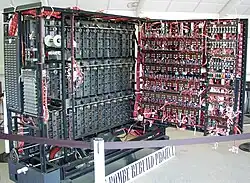Em julho de 1942, Turing desenvolveu uma técnica denominada Turingery (ou brincando, Turingismus)[87] para uso contra as mensagens cifradas de Lorenz produzidas pela nova máquina Geheimschreiber (escritor secreto) dos alemães. Este foi um teletipo de codinome Atum em Bletchley Park. Turingery era um método de quebrar a roda, ou seja, um procedimento para determinar as configurações das rodas de Tunny.[88] Ele também apresentou a equipe Tunny a Tommy Flowers, que, sob a orientação de Max Newman, construiu o computador Colossus, o primeiro computador eletrônico digital programável do mundo, que substituiu uma máquina anterior mais simples (a Heath Robinson), e cuja velocidade superior permitiu que as técnicas de descriptografia estatística fossem aplicadas de maneira útil às mensagens.[89] Alguns disseram erroneamente que Turing foi uma figura-chave no projeto do computador Colossus. Turingery e a abordagem estatística do Banburismus, sem dúvida, contribuíram para o pensamento sobre a criptoanálise da cifra de Lorenz,[90][91] mas Turing não esteve diretamente envolvido no desenvolvimento do Colossus.[92]