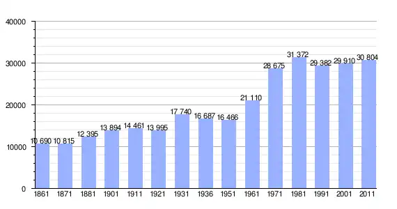 | Variação demográfica do município entre 1861 e 2011[3] |
