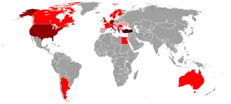 ![]() Mapa da diáspora albanesa ao redor do mundo. | |