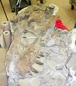 - ↑ Loewen, M.A.; Irmis, R.B.; Sertich, J.J.W.; Currie, P. J.; Sampson, S. D. (2013). Evans, David C, ed. «Tyrant Dinosaur Evolution Tracks the Rise and Fall of Late Cretaceous Oceans». PLoS ONE. 8 (11): e79420. Bibcode:2013PLoSO...879420L. PMC 3819173