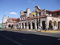 Quando o ferroviário-Atchison Topeka-Santa Fe chegou em 1880, evitou entrar em zona antiga da cidade. Em vez disso, a estação foi estabelecida alguns quilômetros a leste da praça, um sítio que deram o nome de "Nova Albuquerque" ou "Pueblo Nuevo."