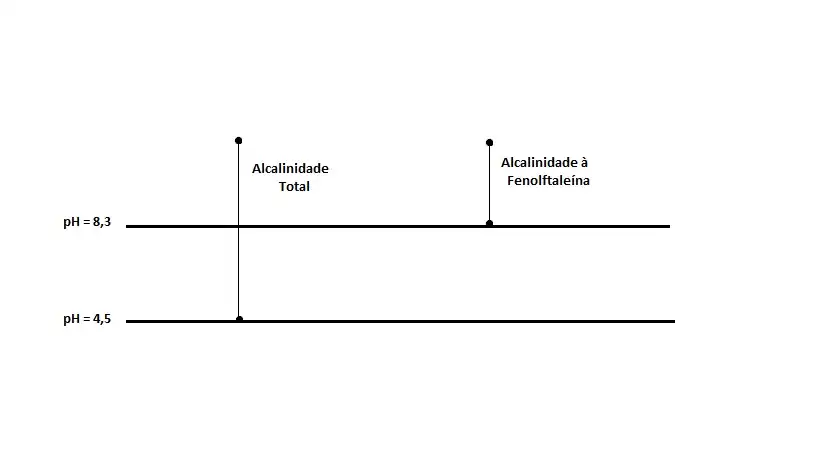 Uma amostra de água apresenta alcalinidade se seu pH for inferior à 4,5. Esse limite condiz à conversão de bicarbonatos em gás carbônico.