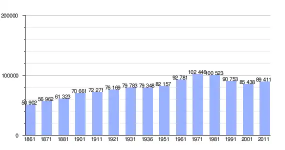 | Variação demográfica do município entre 1861 e 2011[2] |