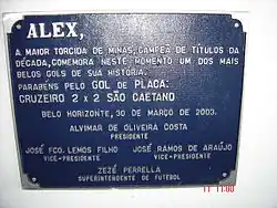 - ↑ «Alex se despede do Cruzeiro e é eternizado no Hall da Fama do Mineirão». UOL. 27 de junho de 2015. Consultado em 14 de maio de 2020