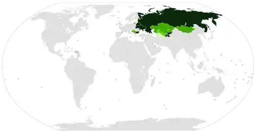 O alfabeto cirílico é o sistema de escrita oficial de seis línguas nacionais eslavas: bielorrusso, búlgaro, macedônio, russo, sérvio e ucraniano. Cinco dessas línguas pertencem a países relativamente homogêneos linguisticamente, mas o russo é falado como segunda língua por boa parte da população russa, e já o foi por uma parcela ainda maior da população da antiga União Soviética. A atual Rússia possui 21 repúblicas autônomas, cada uma delas com o direito constitucional de escolher sua própria língua oficial.[18] Com isso, há diversas línguas não eslavas, dentro e fora do território russo, cuja escrita padrão é a cirílica.