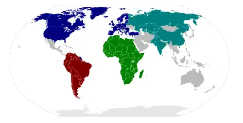 - Aliados, formada sob a égide dos Estados Unidos, do Reino Unido, da França, da URSS e da China, também durante a II Guerra Mundial, em oposição às potências do Eixo;