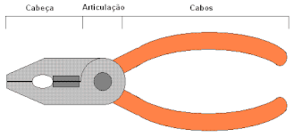 O alicate é composto de três partes básicas: a cabeça, a articulação e o par de cabos.