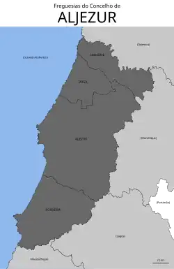 A vila é sede do Município de Aljezur que tem 323,50 km² de área[3] e 6161 habitantes (censo de 2021),[4] subdividido em 4 freguesias.[5]