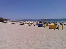 A segunda corresponde à planície litoral da Costa de Caparica, que não excede os 11 metros de cota altimétrica. Apresenta maior largura a norte, constringindo-se gradualmente em direção a sul. A nascente, é delimitada longitudinalmente pela Arriba Fóssil da Costa de Caparica, que também dimunui de altitude em direção a meridião.[6]