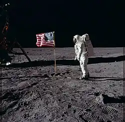 A Apollo 11 dos Estados Unidos foi a primeira missão tripulada a pousar na Lua, em 20 de julho de 1969.[3] Houve seis pousos tripulados na Lua entre 1969 e 1972, além de vários pousos não tripulados entre 22 de agosto de 1976 e 14 de dezembro de 2013.