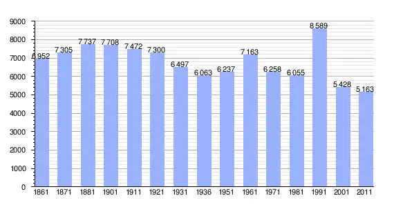| Variação demográfica do município entre 1861 e 2011[1] |