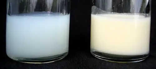 Quando uma mãe tem seu suprimento completo de leite e está amamentando seu bebê, o primeiro leite a ser ordenhado é chamado de primeiro leite. O primeiro leite é normalmente mais fino e menos rico em calorias. O leite posterior que se segue é rico em calorias e gordura.[40]:239
