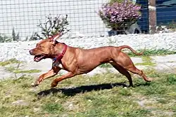 O pit bull é um cão atlético de porte médio do tipo terrier, e descende do extinto bull-and-terrier, cães que eram gerados pelo cruzamento entre o extinto antigo buldogue inglês e o antigo terrier inglês.[1][3]