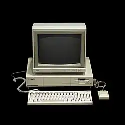 Amiga é uma família de computadores pessoais produzida pela Commodore de 1985 até a falência da empresa em 1994, com produção posterior por outras empresas. O modelo original aprimorou significativamente os recursos gráficos e de áudio em comparação com os sistemas de 8 bits e é um dos vários computadores de meados da década de 1980 com processadores de 16 bits ou 16/32 bits, 256 KB ou mais de RAM e interfaces gráficas baseadas em mouse. Esses computadores incluem o Atari ST, o Macintosh, o Archimedes e, posteriormente, o Apple IIGS. O Amiga difere de seus contemporâneos por meio de hardware personalizado para acelerar gráficos e som, incluindo sprites, um blitter e quatro canais de áudio baseados em amostras. Ele executa um sistema operacional multitarefa preemptivo[1] chamado AmigaOS, com um ambiente de desktop chamado Workbench.