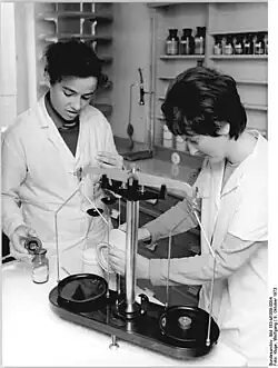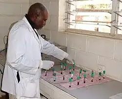 O farmacêutico,[12] nas análises clínicas, realiza exames hematológicos, citológicos, imunológicos, microbiológicos e bioquímicos, solicitados geralmente por um médico. Além disso, pode realizar, interpretar e emitir laudos e pareceres, responsabilizando-se tecnicamente por análises clínico-laboratoriais.[13]
