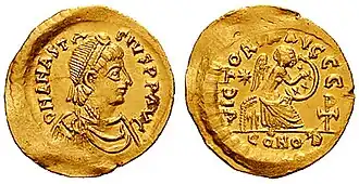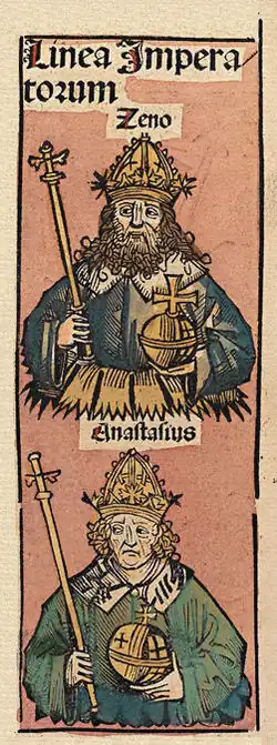 - ↑ Hugh Elton. «Anastasius (AD 491–518)». Florida International University – An Online Encyclopedia of Roman Emperors (em inglês). Roman-emperors.org