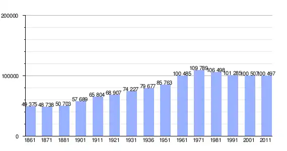 | Variação demográfica do município entre 1861 e 2011[3] |