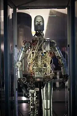 Um androide é um robô humanoide[1] ou outro ser artificial[2][3][4] geralmente feito de um material semelhante à carne.[2] Historicamente, os androides estavam completamente dentro do domínio da ficção científica e frequentemente vistos no cinema e na televisão, mas os avanços recentes na tecnologia de robôs agora permitem o projeto de robôs humanoides funcionais e realistas.[5][6]