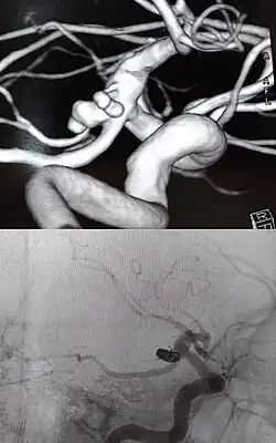 - ↑ Brouillard, Adam M; Sun, Xingwen; Siddiqui, Adnan H; Lin, Ning. «The Use of Flow Diversion for the Treatment of Intracranial Aneurysms: Expansion of Indications». Cureus. 8 (1). ISSN 2168-8184. PMC 4772997