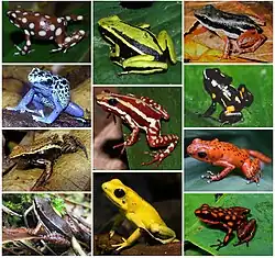 - ↑ «Dendrobatidae Cope, 1865 (1850) | Amphibian Species of the World». amphibiansoftheworld.amnh.org. Consultado em 5 de novembro de 2020
