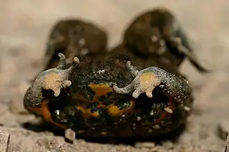 Anfíbios (do grego αμφι, amphi ('ambos') e βιο, bio ('vida'), que significa «ambas vidas» ou «em ambos meios») constituem uma classe de animais vertebrados, ectotérmicos que não possuem bolsa amniótica agrupados na classe Amphibia. A característica mais marcante dos seres vivos da classe é o seu ciclo de vida dividido em duas fases: uma aquática e outra terrestre, apesar de haver exceções. Atualmente existem cerca de 8483 espécies vivas de anfíbios segundo a referência mundial de anfíbios, o site Amphibian Species of the World.[3] Todos os anfíbios existentes (vivos) pertencem à subclasse monofilética Lissamphibia, com três ordens vivas: Anura (sapos e rãs),[4] Urodela (salamandras)[5] e Gymnophiona (cecílias).[6]