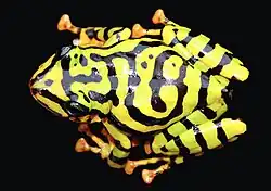 A coloração da pele dos anfíbios, geralmente é relacionada a mecanismos de defesa, que podem ser divididos em dois grupos principais: a coloração críptica e a coloração aposemática.[18]