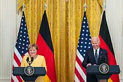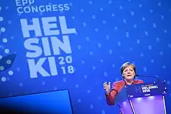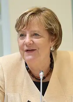 Angela Dorothea Merkel (Hamburgo, 17 de julho de 1954) é uma política alemã que serviu como Chanceler da Alemanha de 2005 a 2021 e foi líder do partido de centro-direita União Democrata-Cristã (CDU) de 2000 a 2018. Ela já foi descrita como a líder de facto da União Europeia,[1] a mulher mais poderosa do mundo[2] e a "líder do Mundo Livre".[3]