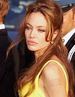 - ↑ Fair, Vanity. «Angelina Jolie Has Three Giant New Tattoos». SELF