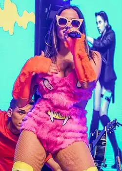 Larissa de Macedo Machado (Rio de Janeiro, 30 de março de 1993),[3] mais conhecida pelo nome artístico Anitta, é uma cantora, compositora, atriz e empresária brasileira.[4] Uma das artistas mais proeminentes do Brasil, tornou-se conhecida por seu estilo versátil e por misturar gêneros como pop, funk brasileiro, reggaeton e música eletrônica. Já recebeu ao longo da carreira oito MTV Europe Music Awards, quatro Latin American Music Awards, três MTV Video Music Award de Melhor Artista Latino do Ano e um Prêmio da Música Brasileira, e duas indicações ao Grammy Awards e dez ao Grammy Latino,[5][6][7] além de ser a artista feminina brasileira com mais entradas na Billboard Hot 100. É comumente conhecida como a "Rainha do pop brasileiro".[8]