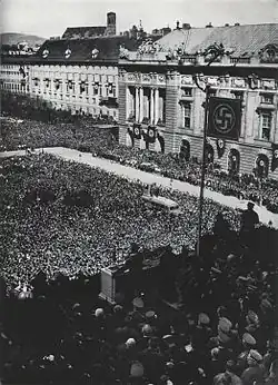 Milhares de austríacos ouvindo Hitler falar na Heldenplatz, em Viena, após a anexação do país.